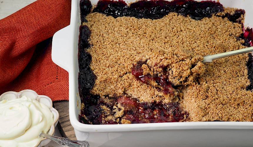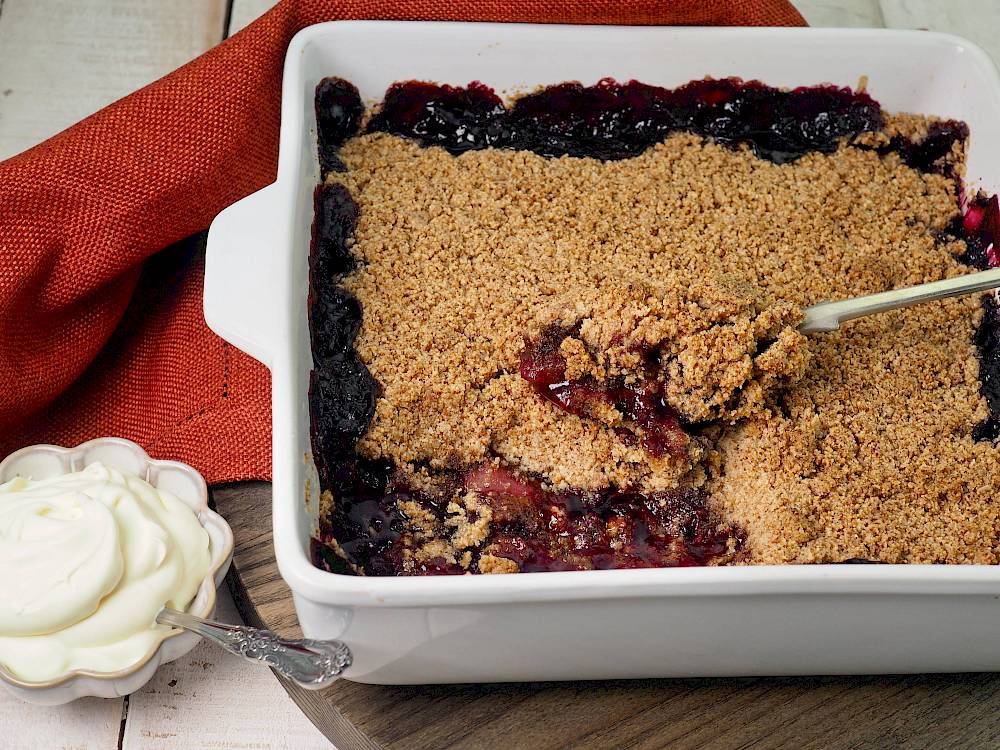 Bake for 30 - 35 minutes or until the berry sauce is bubbling up at the sides and the top is golden.